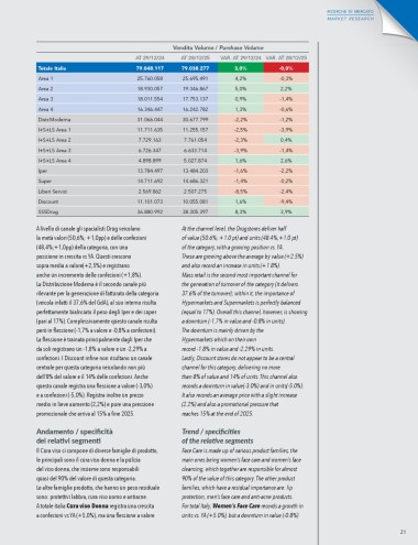 anche un incremento delle confezioni (+1,8%). Mass retail is the second most important channel for