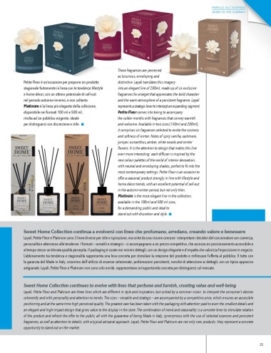 fragrances, as well as attention to details, with a typical artisanal approach. Layali, Petite Fleur and Platinum are not only new products: they represent a concrete
