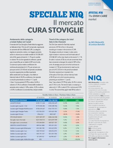 Additivi Lavastoviglie Brillantante  €33.382.185  €34.623.094  8,3%         3,7%          NIQ è fonte di verità.