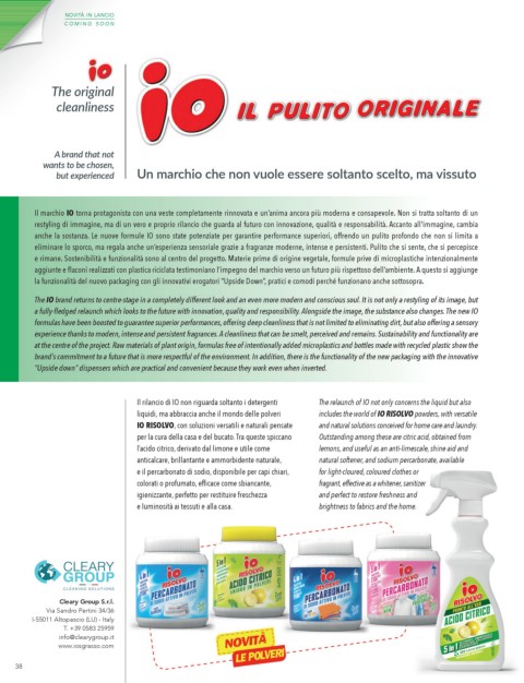Il rilancio di IO non riguarda soltanto i detergenti The relaunch of IO not only concerns the liquid but also
